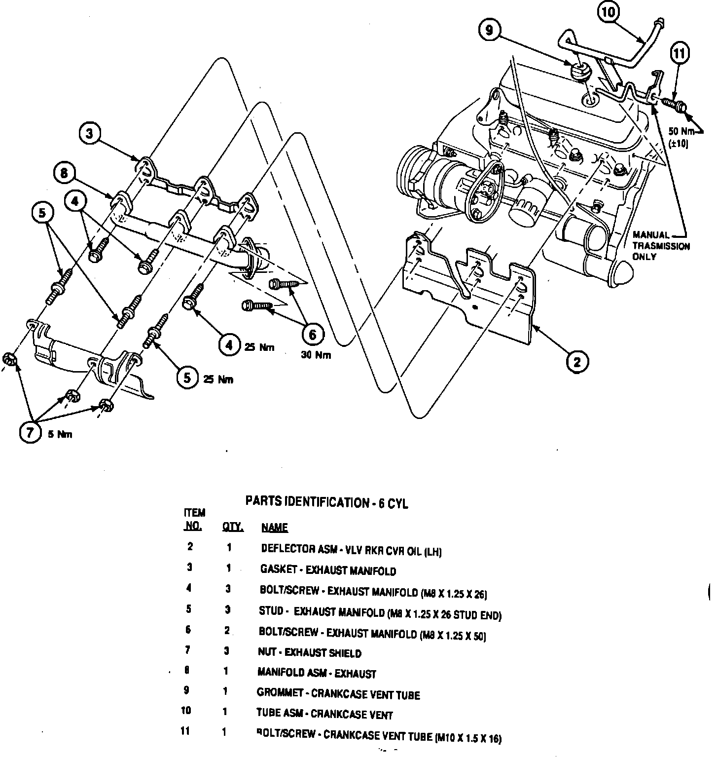 t. Install crossover to manifold bolts using torque values described in ILLUSTRATION A & B.
