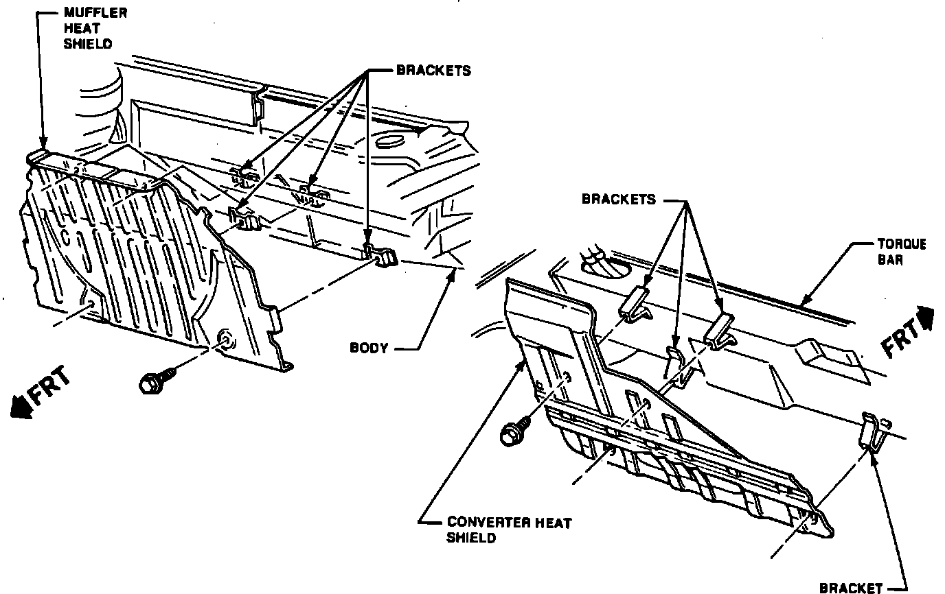 z. Install A/C compressor heat shield (A/C equipped vehicles), convertor heat shield.