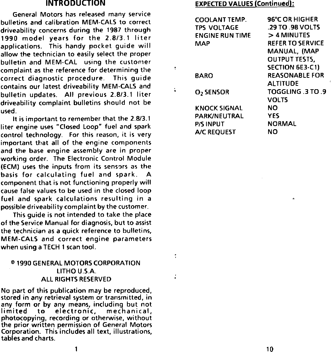 The Pocket Guide (s) attached to this bulletin should be provided to the driveability technicians at each dealership. They summarize all information into a "condition, cause, and correction" format specific to resolution and the "do's and don'ts" for each model year engine.