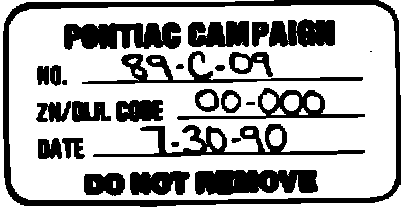 Each vehicle modified in accordance with the instructions outlined in this Product Campaign Bulletin will require a "Campaign Identification Label." Each label provides a space to include the campaign number, the five digit dealer code of the dealer performing the campaign service, and the date the vehicle was campaigned. This information may be inserted with a typewriter or ballpoint pen. Install the label only on a clean, dry surface of the radiator baffle where it is readily visible. (Additional campaign labels are available on stationery order as Form 7901-709).