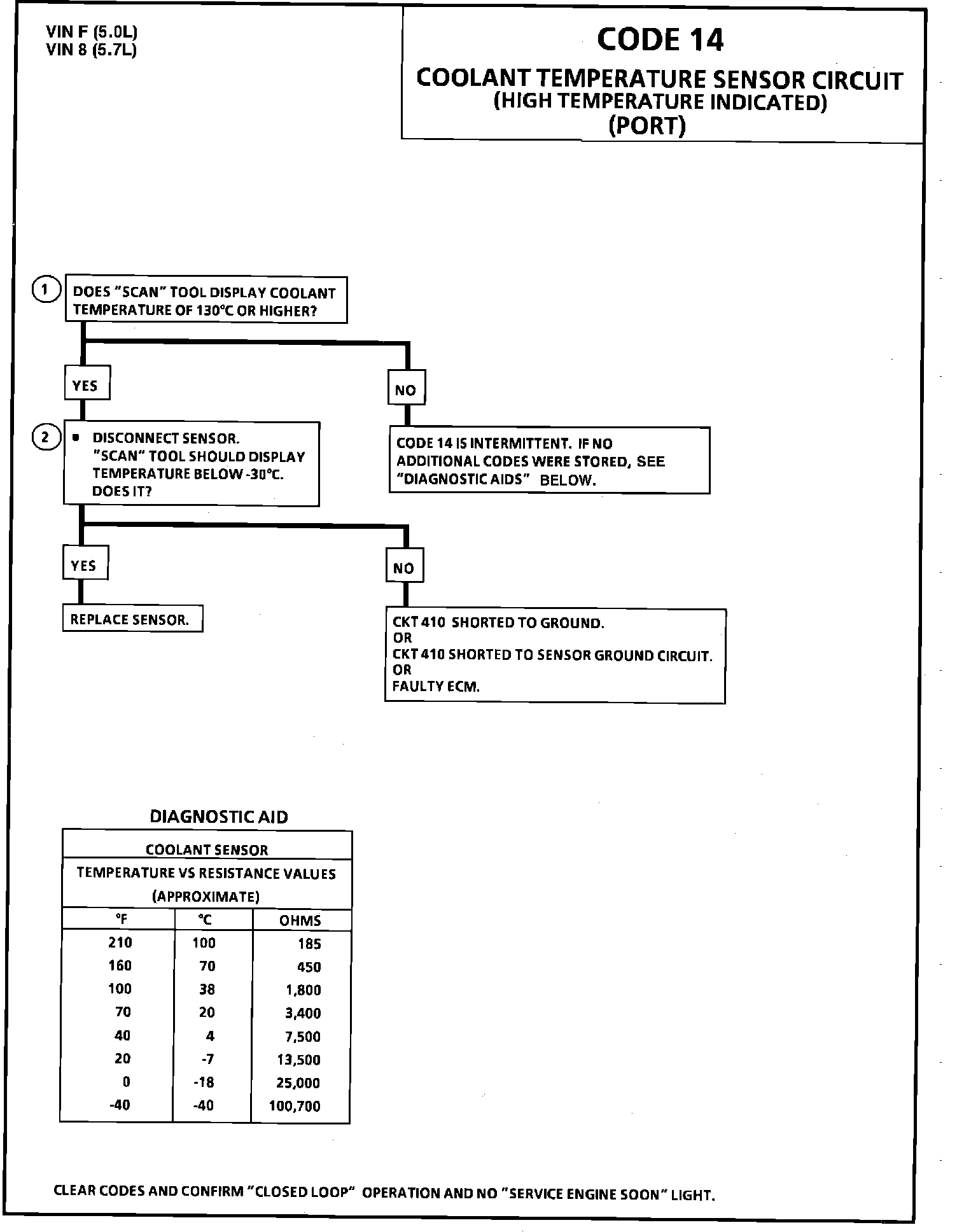 CODE 14 - COOLANT TEMPERATURE SENSOR CIRCUIT (HIGH TEMPERATURE INDICATED)
