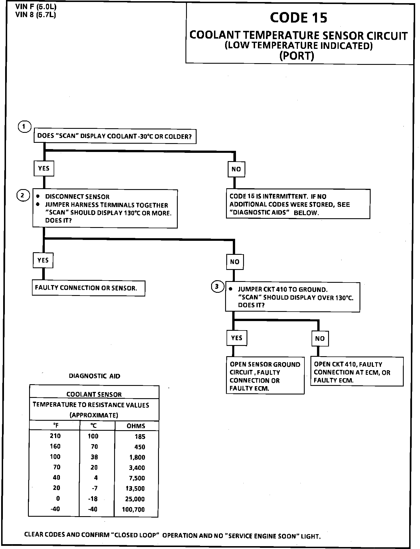CODE 15 - COOLANT TEMPERATURE SENSOR CIRCUIT (LOW TEMPERATURE INDICATED)