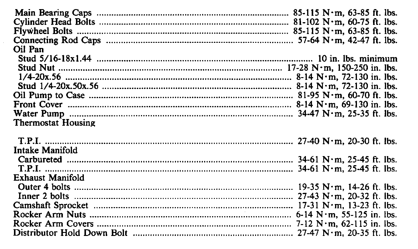 Torque Specifications: