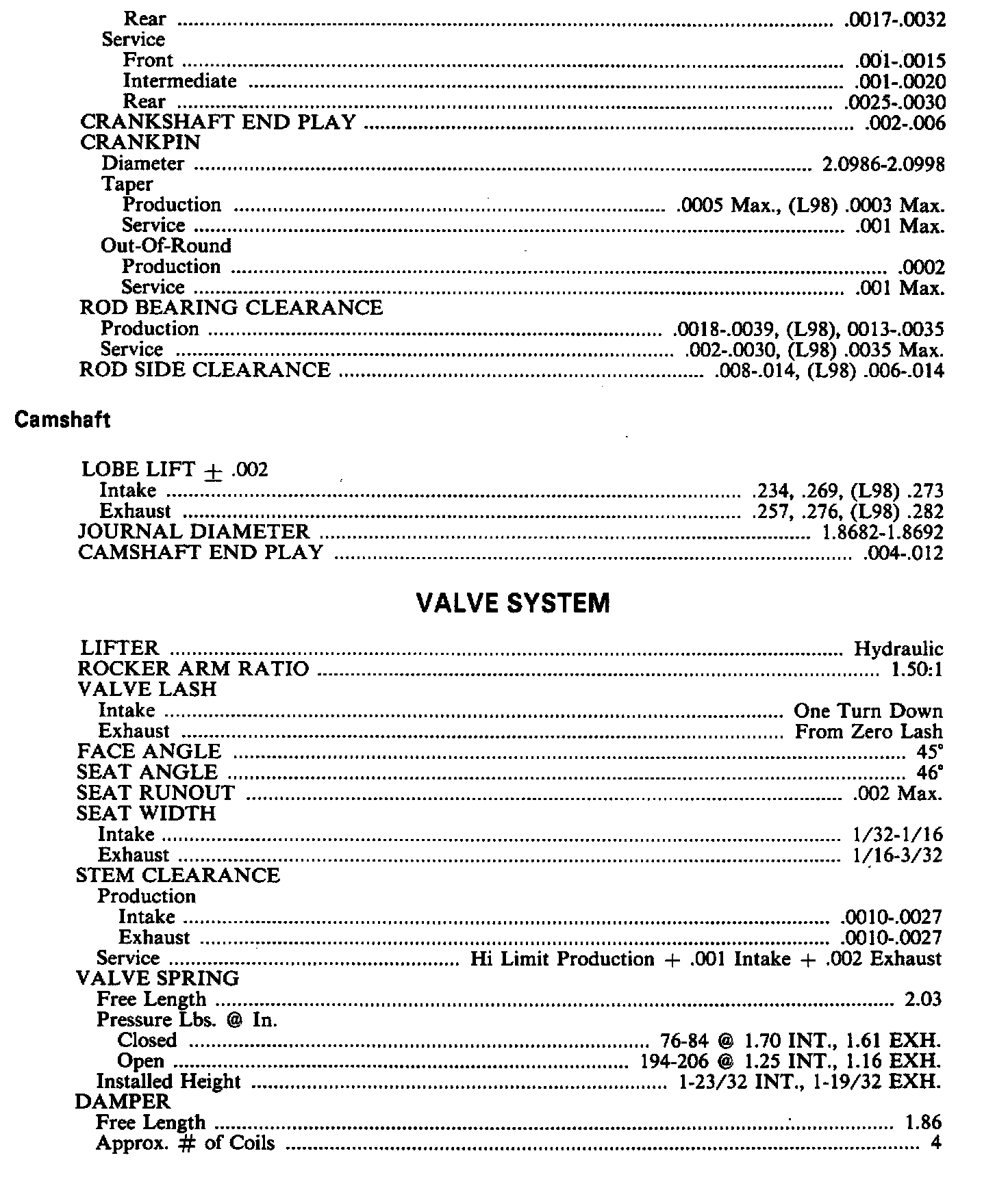 Engine Specifications: