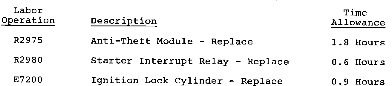 Antitheft - Component Location/Labor Update