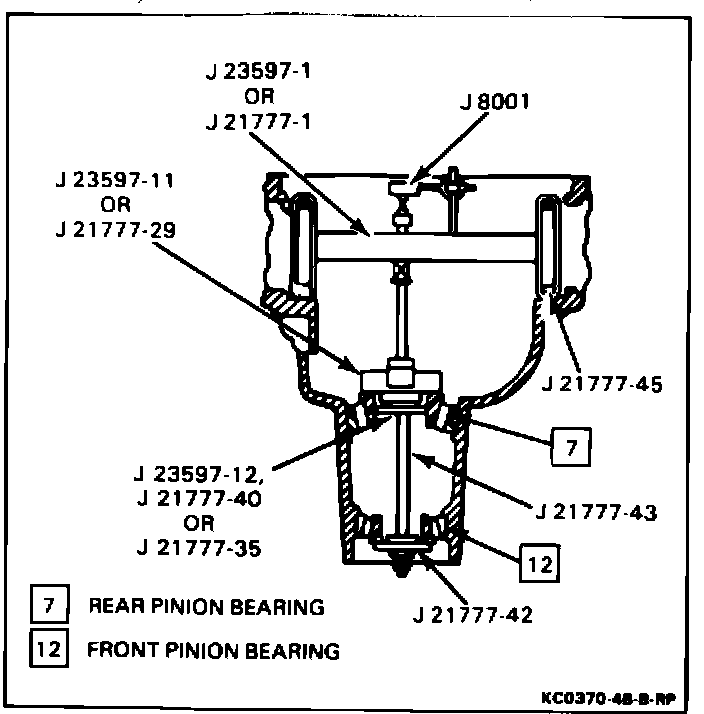 ^ Loosen J 21777-43 and remove special tools and both bearings from carrier.