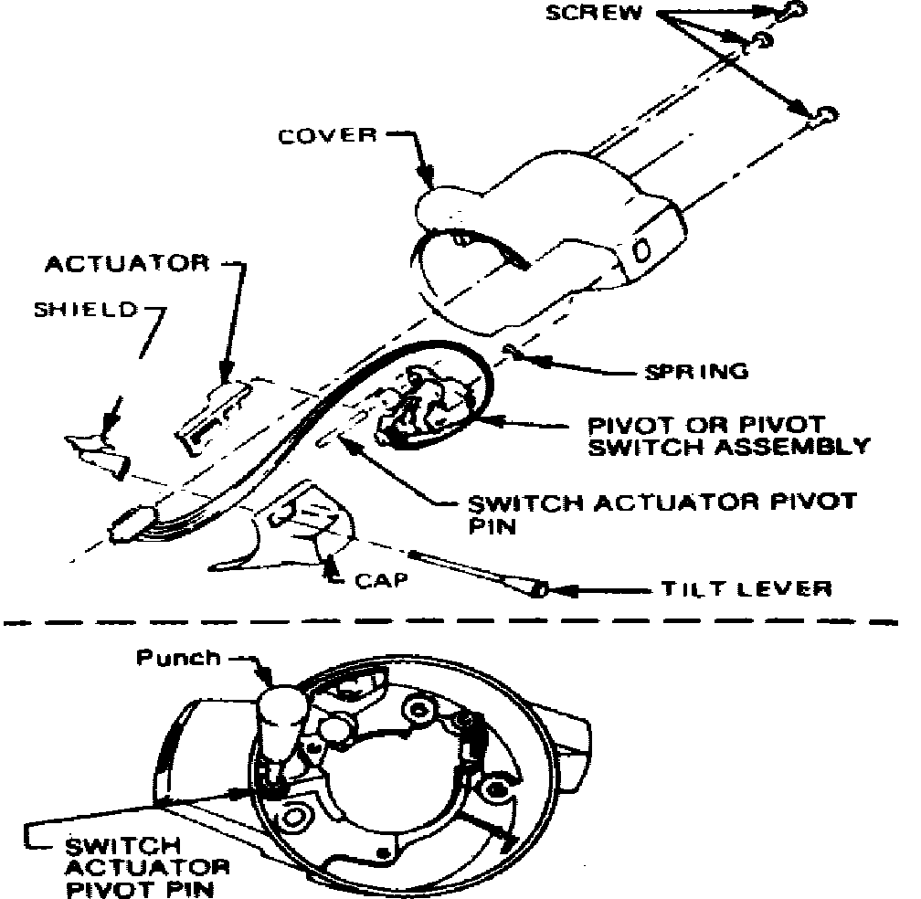 Fig. 17 Windshield wiper switch removal & installation. Models less tilt wheel: