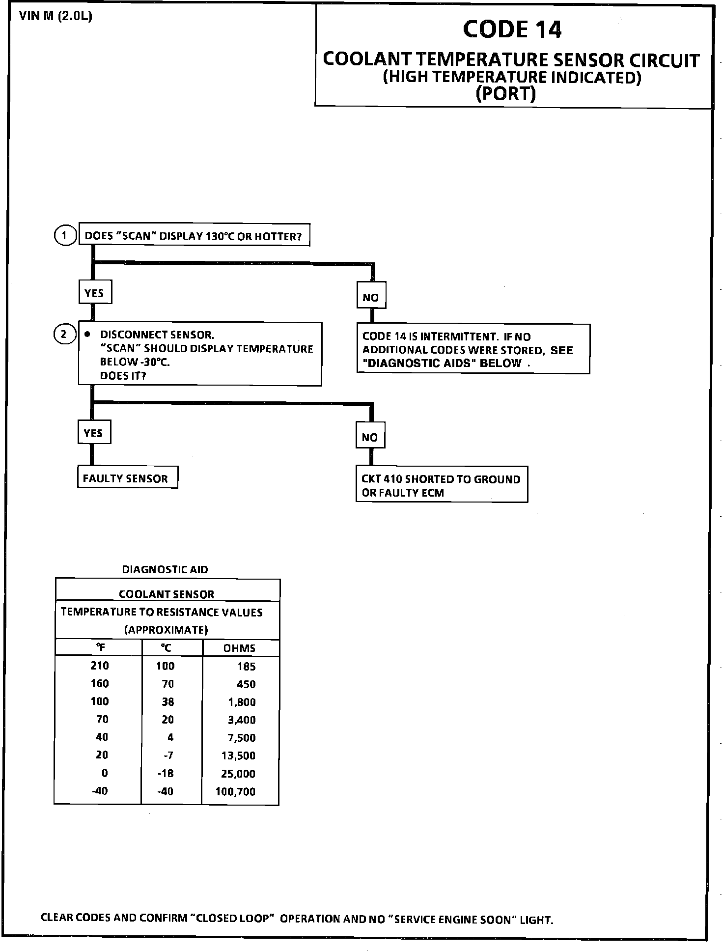 1. Checks to see if code was set as result of hard failure or intermittent condition. Code 14 will set if: