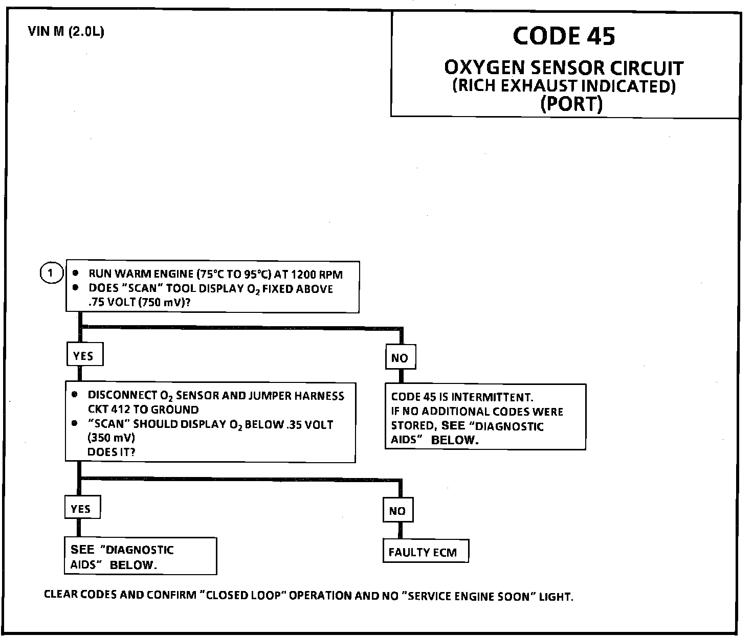 1. Code 45 is set when the O2 sensor voltage remains above .75 volt for 3O seconds; and the system is in "Closed Loop"