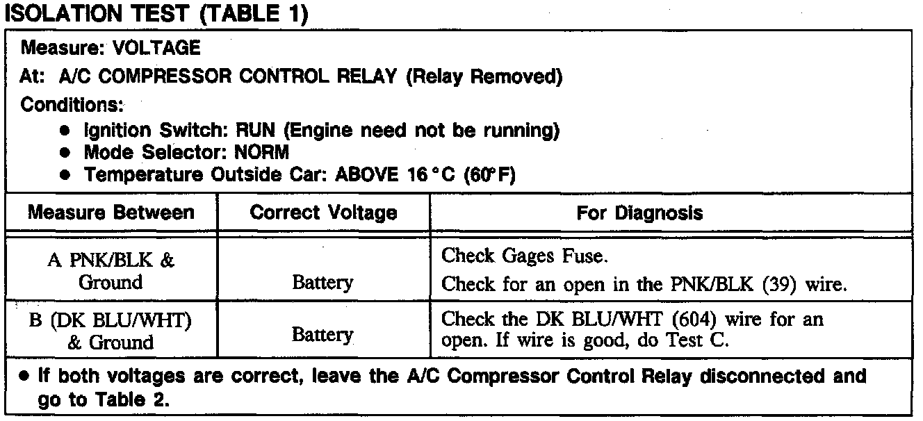 Isolation Test Table 1: