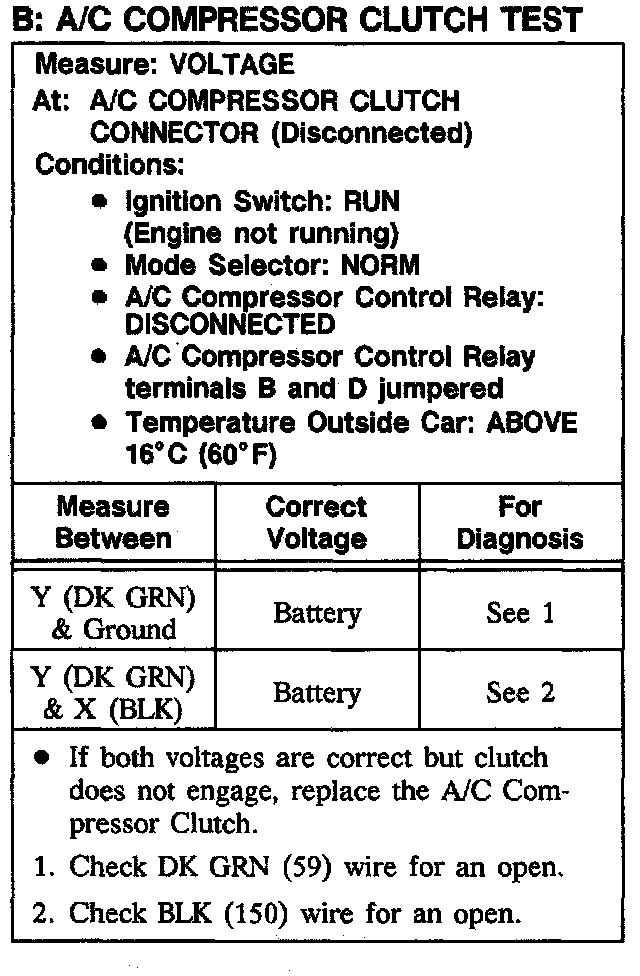 Test B: A/C Compressor Clutch Test