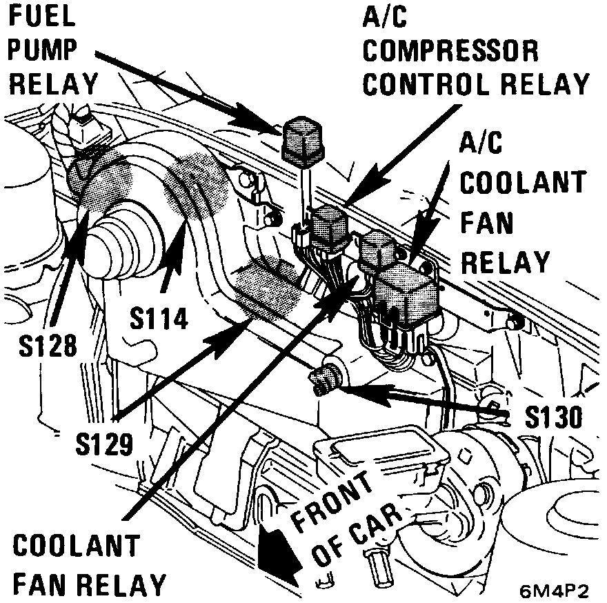 The Compressor Control Relay is located in front of the dash on the relay bracket.