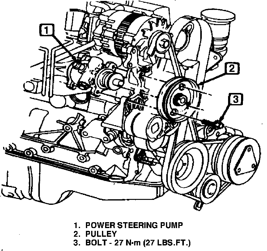 Fig. 1 Power steering pump replacement. 4-121 engine: