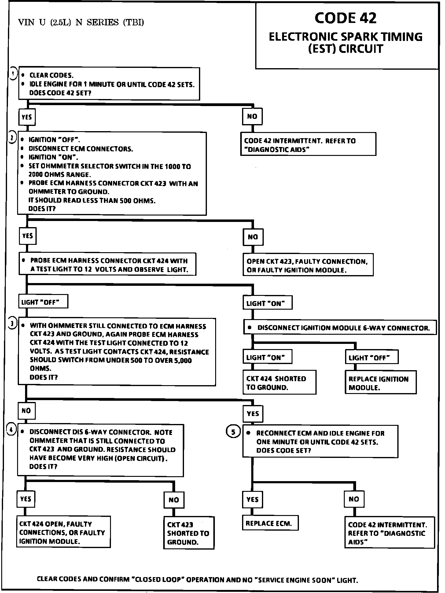 5. Confirms that Code 42 is a faulty ECM and not an intermittent in CKT(s) 423 or 424.