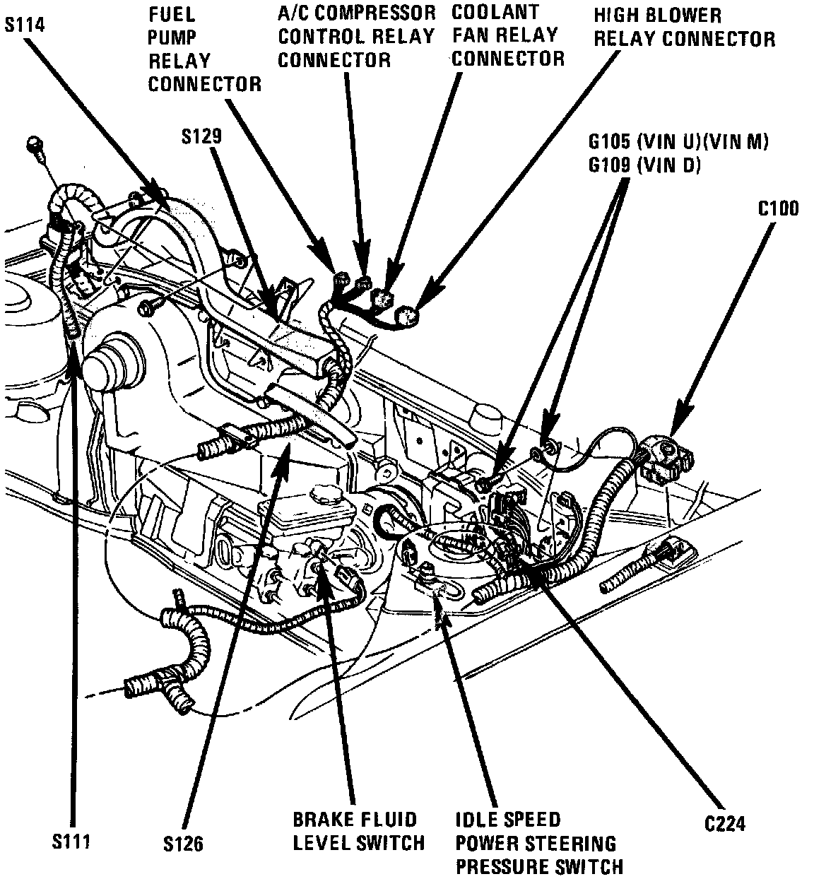 The Blower Relay is located at the center front of the dash on the relay bracket.