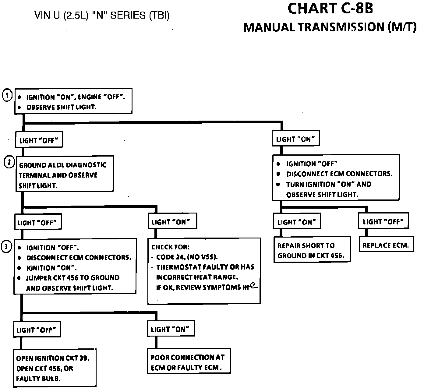 2. When the diagnostic terminal is grounded, the ECM should ground CKT 456, and the shift light should be "ON."