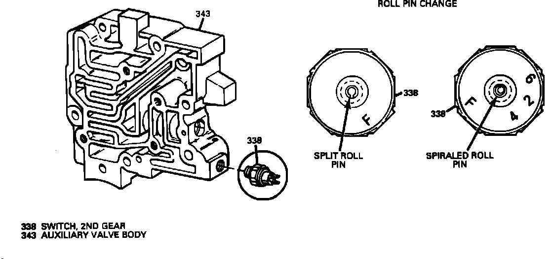 2nd Gear switches equipped with new spiraled roll pins went into production in all HYDRA-MATIC 3T40 transaxles on Julian Date 333 (November 29, 1989).