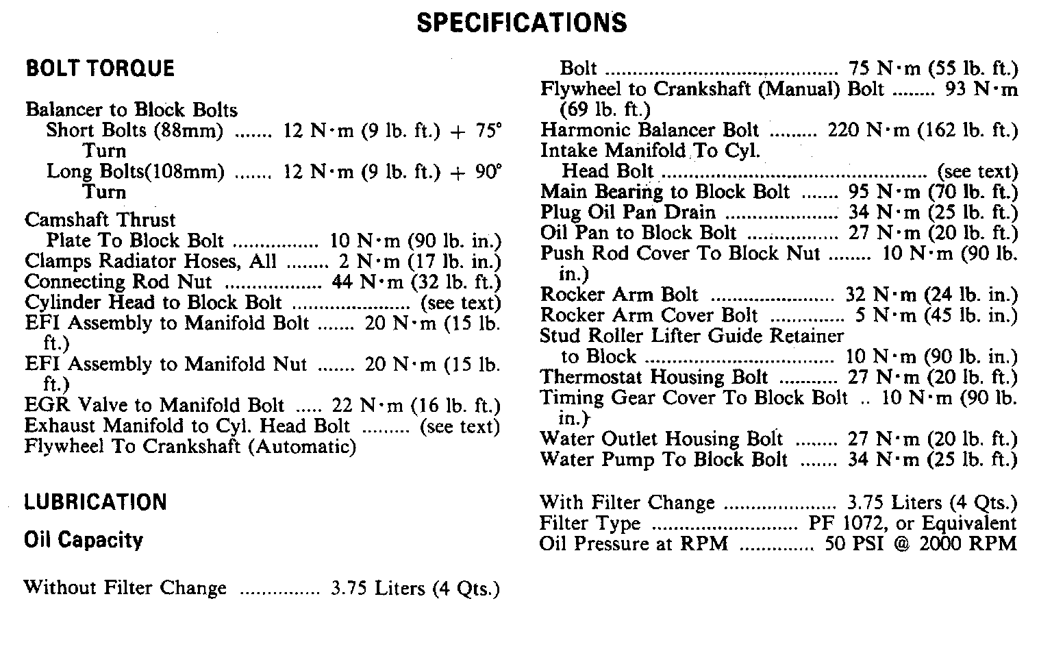 Engine Specifications: