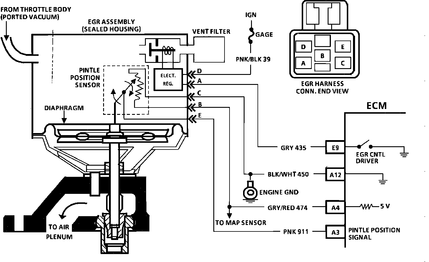 This system, also, contains a pintle position sensor, which works similar to a TPS sensor, and as EGR flow is increased, the sensor output also increases.