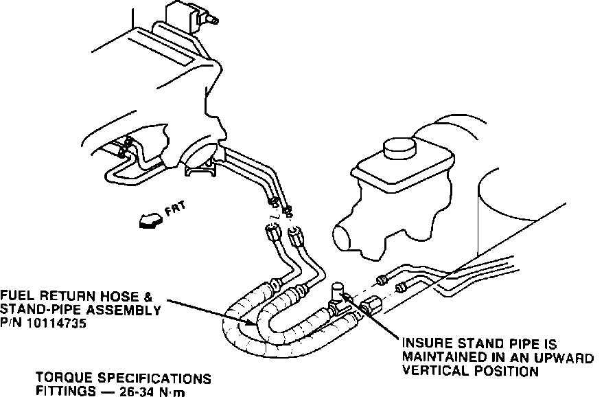 Vehicles exhibiting this condition may be repaired by installation, following applicable shop manual procedures, of a new fuel return hose and stand-pipe assembly, P/N 10114735, which will reposition stand-pipe in a upward vertical position.