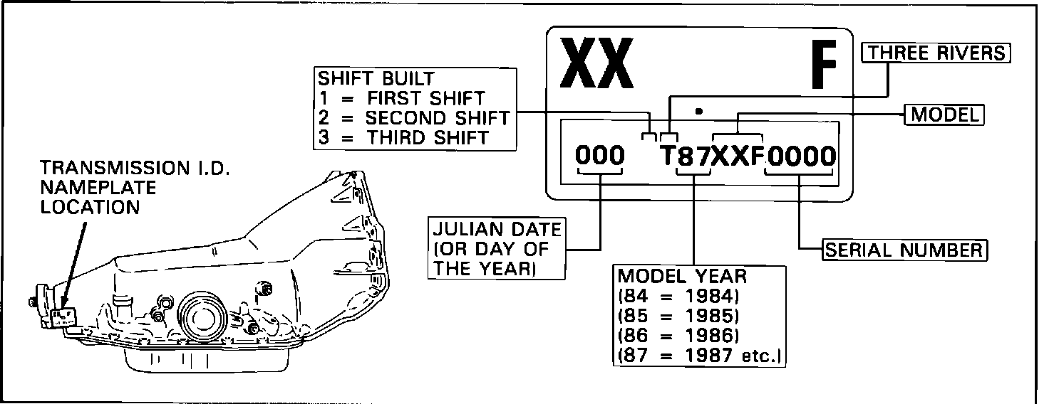 Figure 1 - THM 200-4R TRANSMISSION IDENTIFICATION INFORMATION: