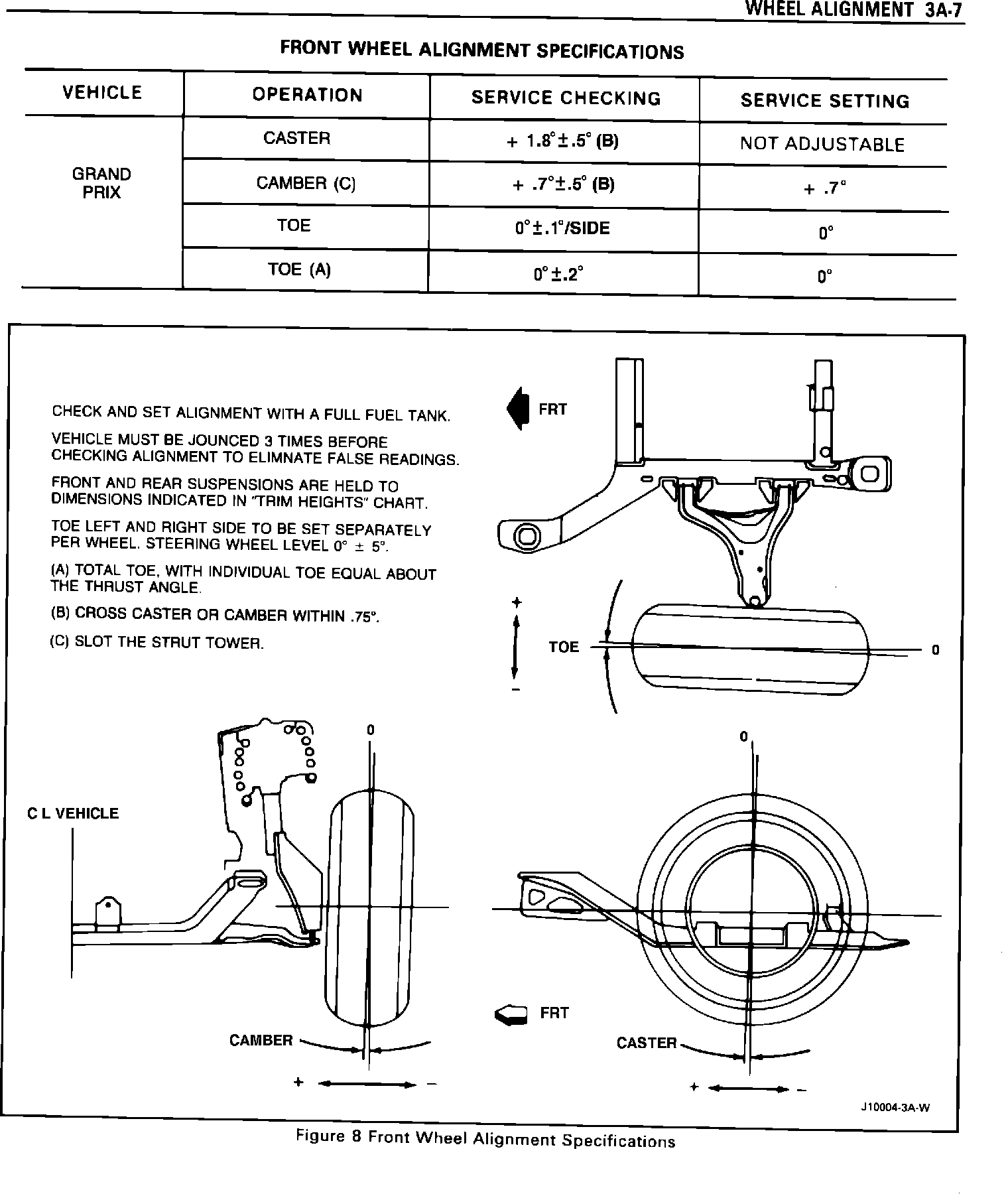 FIGURE 8 - FRONT WHEEL ALIGNMENT SPECIFICATIONS: