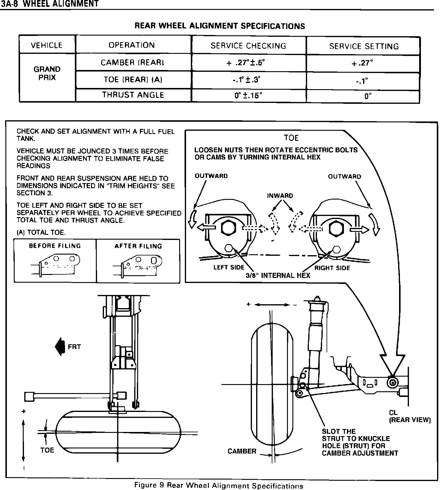 FIGURE 9 - REAR WHEEL ALIGNMENT SPECIFICATIONS: