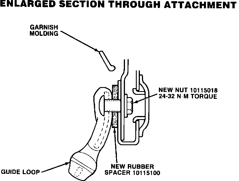 A new upper guide loop nut, P/N 10115018 and rubber spacer, P/N 10115100 have been released for production and service on all 1988 Grand Prix models.. These part numbers Do Not Appear in the current parts books, but will be included in future publications.
