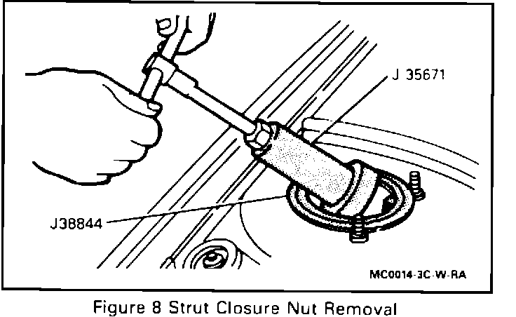 8. Strut cartridge closure nut by unscrewing closure nut using J 35671, refer to Figure 8.