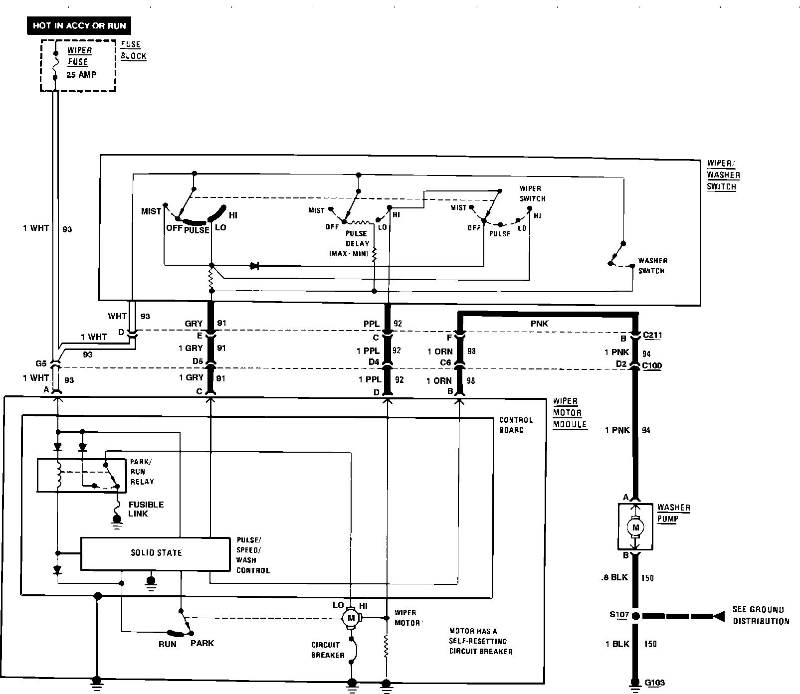 Windshield Wiper/Washer Wiring Circuit (W/Interval Wiper):