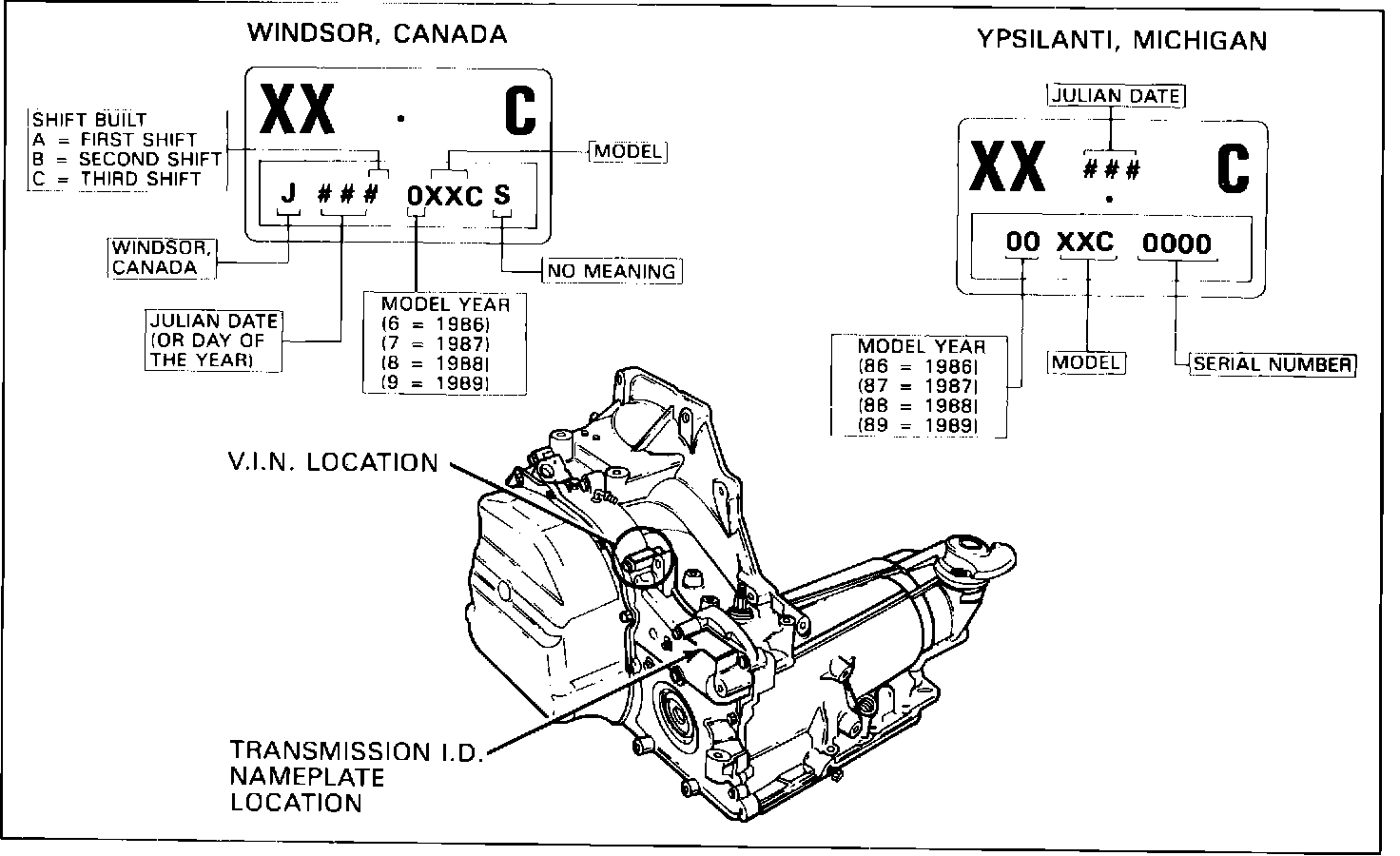 FIGURE 1 - 125/125C TRANSAXLE IDENTIFICATION INFORMATION: