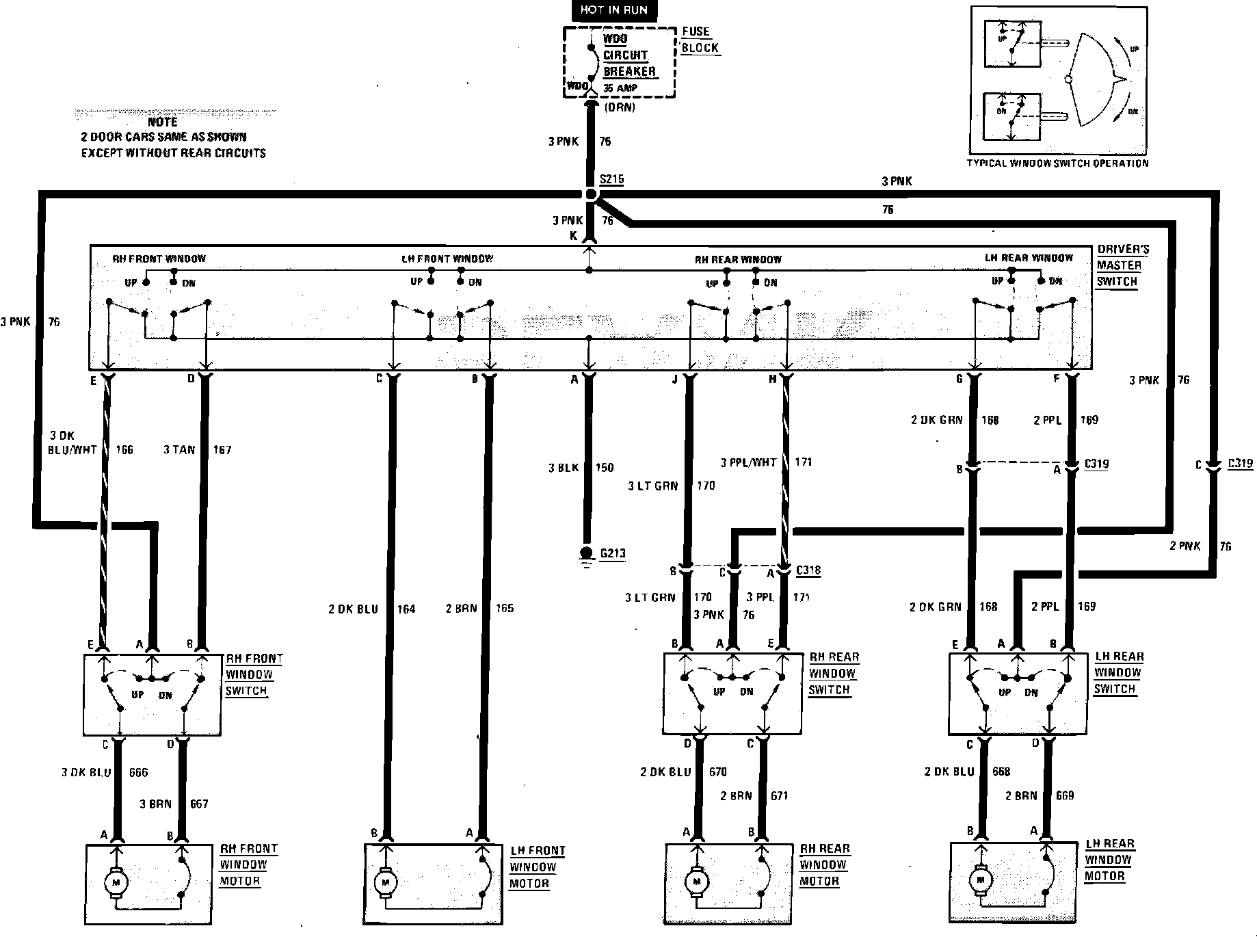 Fig. 274 Power Window Wiring Circuit Less Convertible: