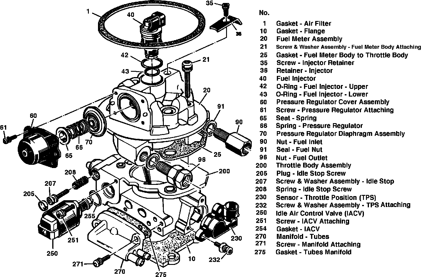 Fig. 47 Exploded view of throttle body injector assembly: