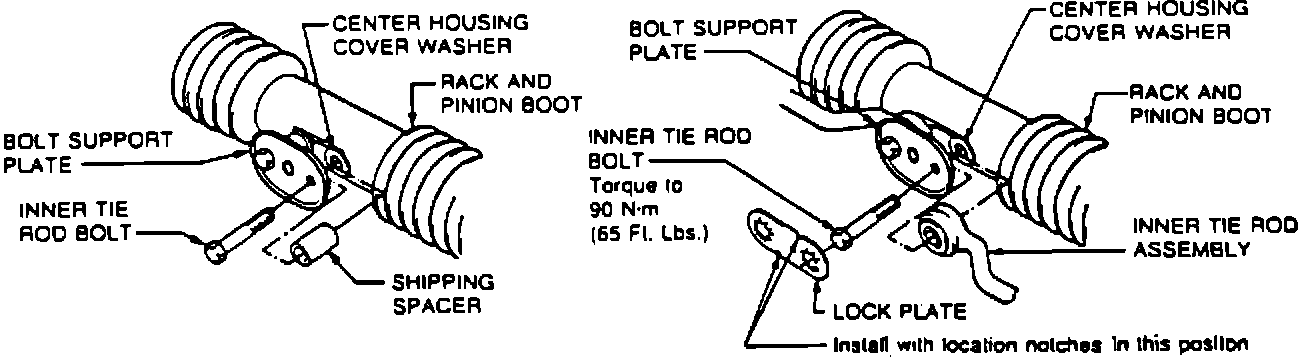 11. Torque inner tie rod bolts to 90 N-m 67 ft. lb.