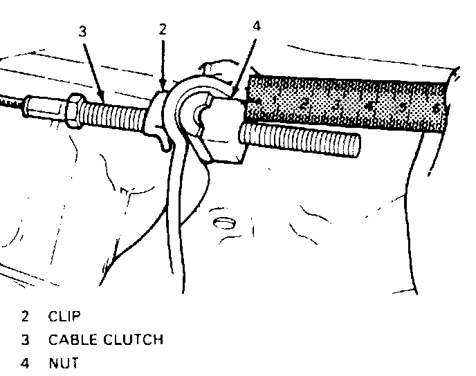 3. Clutch cable at release lever by removing the clip(2) and nut(4).