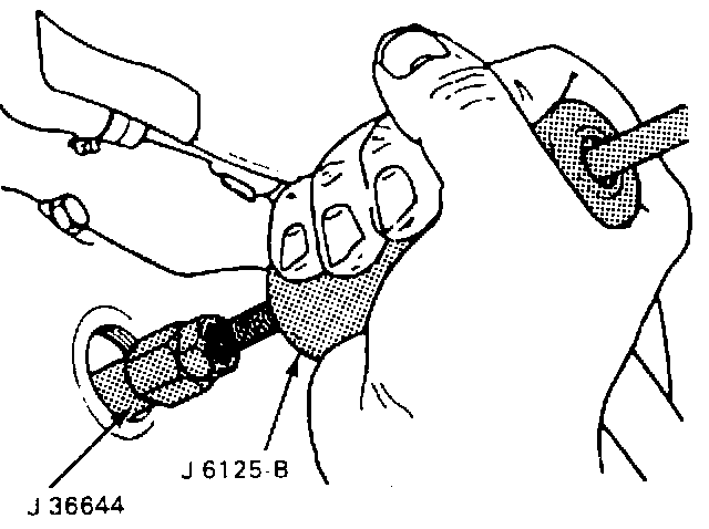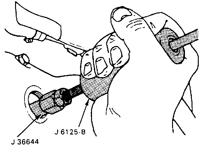 9. Install J-36644 with J-6125-B into end of input shaft. Disengage input shaft from cluster gear.