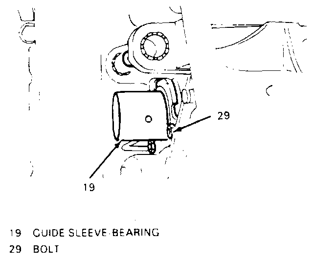 17. Bearing guide sleeve bolts (29) and bearing guide sleeve.
