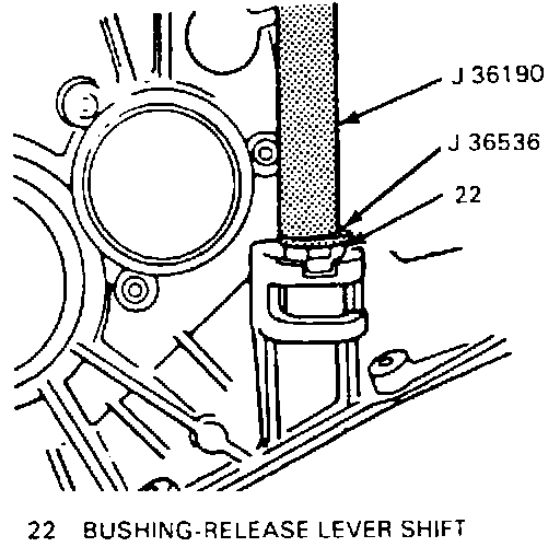 1. Release lever shaft bushings (22). Use J-36536 with J-36190 to drive in bushings, then coat bushing bores with grease No. 1052349, or equivalent.