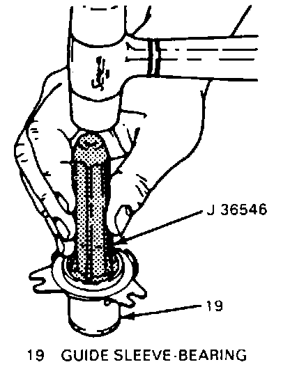 2. Input shaft seal in bearing guide sleeve. Use J-36546 with a hammer.