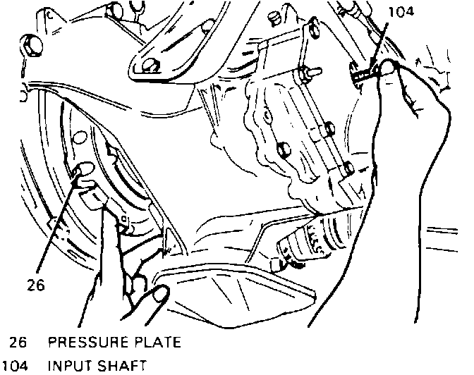 NOTE: Pressure plate and clutch disc cannot be removed without the three spring clamps installed.