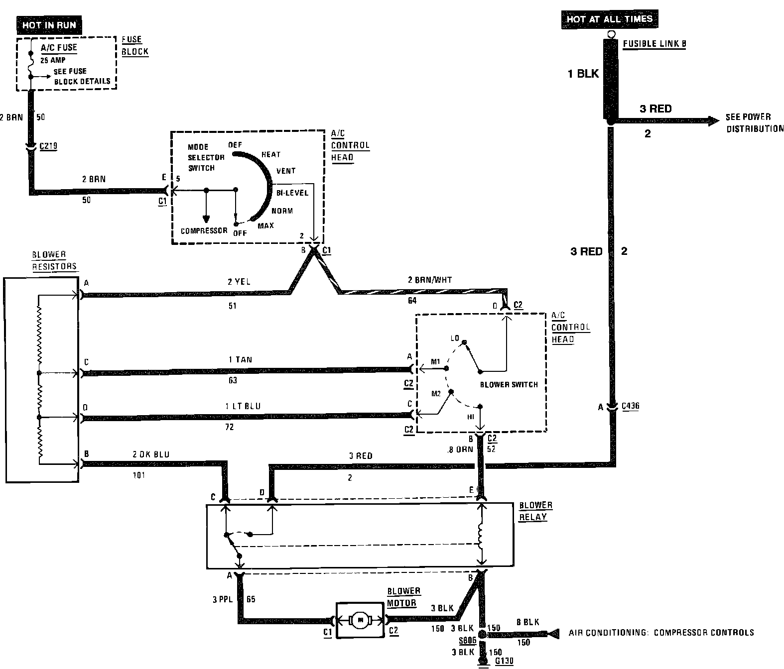 A/C Blower Controls Wiring Circuit (W/Manual A/C):