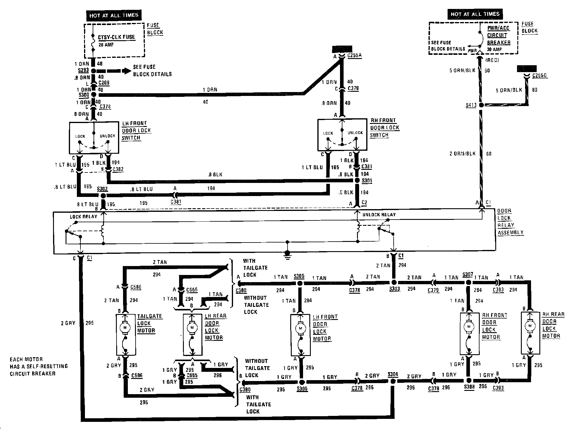 Power Door Locks Wiring Circuit: