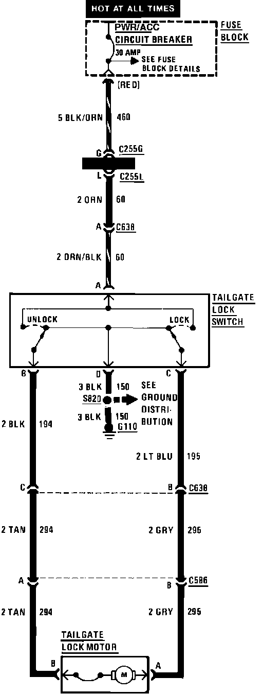Power Tailgate Lock Wiring Circuit (Less Power Door Locks):