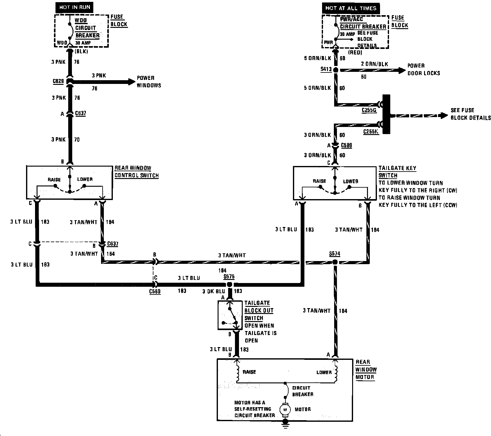 Power Tailgate Window Wiring Circuit: