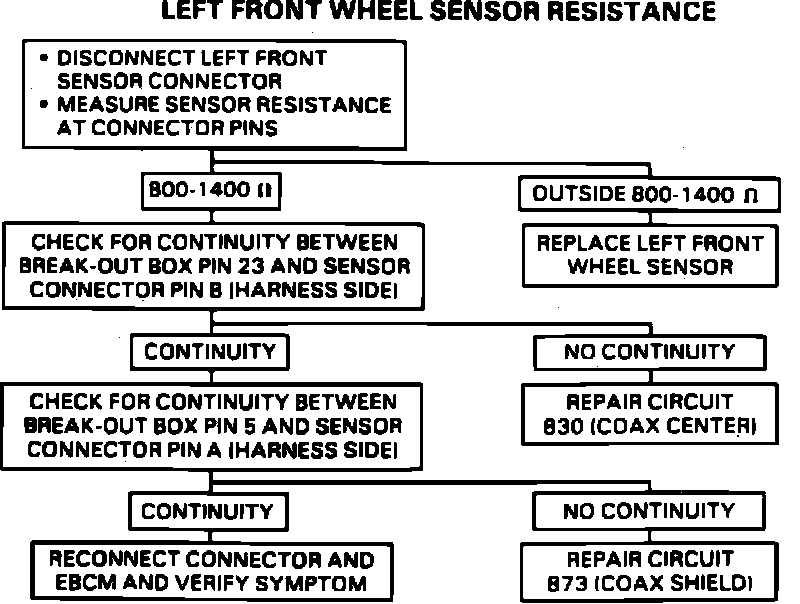 Fig. 26 Left Front Wheel Sensor Resistance. 1989-90 6000: