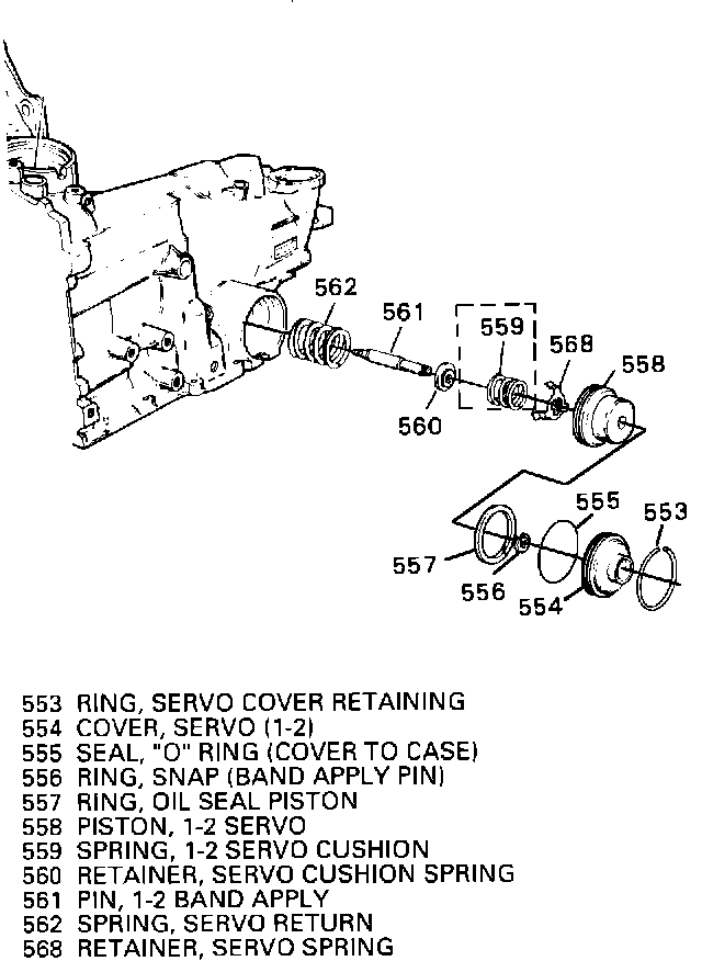 - 1-2 servo cushion spring (559) (all models) (Figure 3)