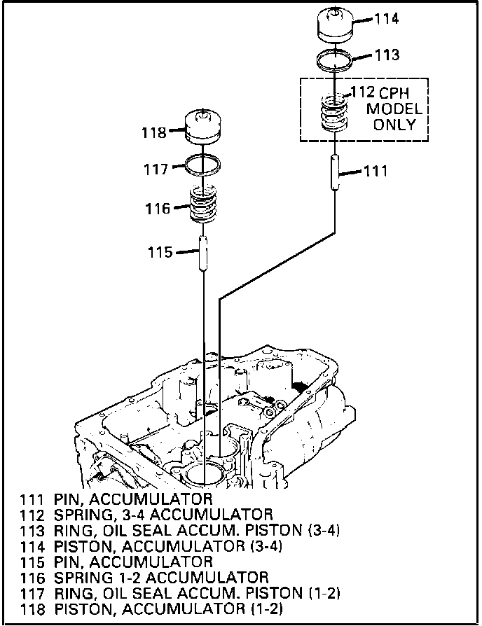 - 1-2 accumulator spring (116) (CPH model only) (Figure 4)