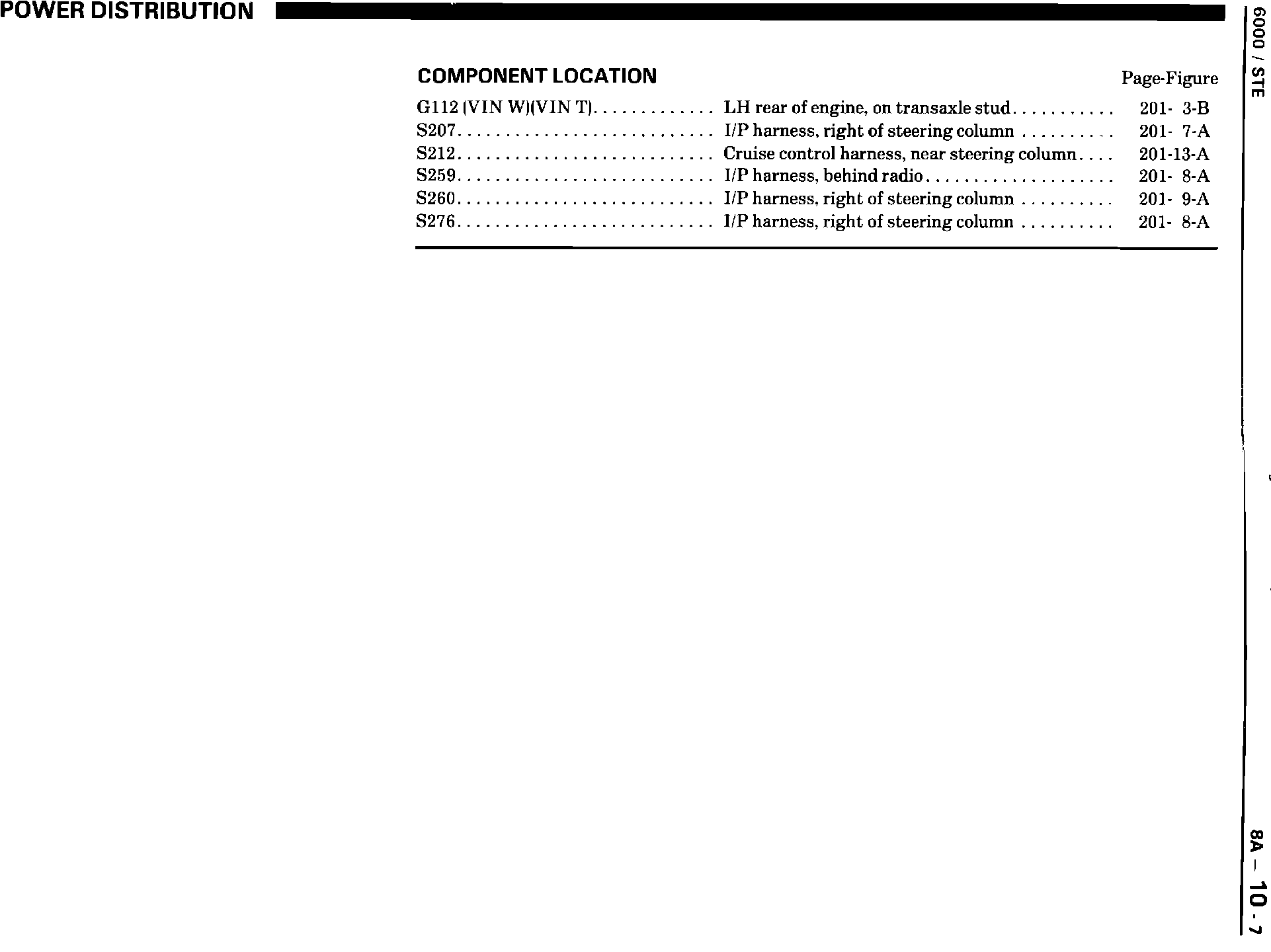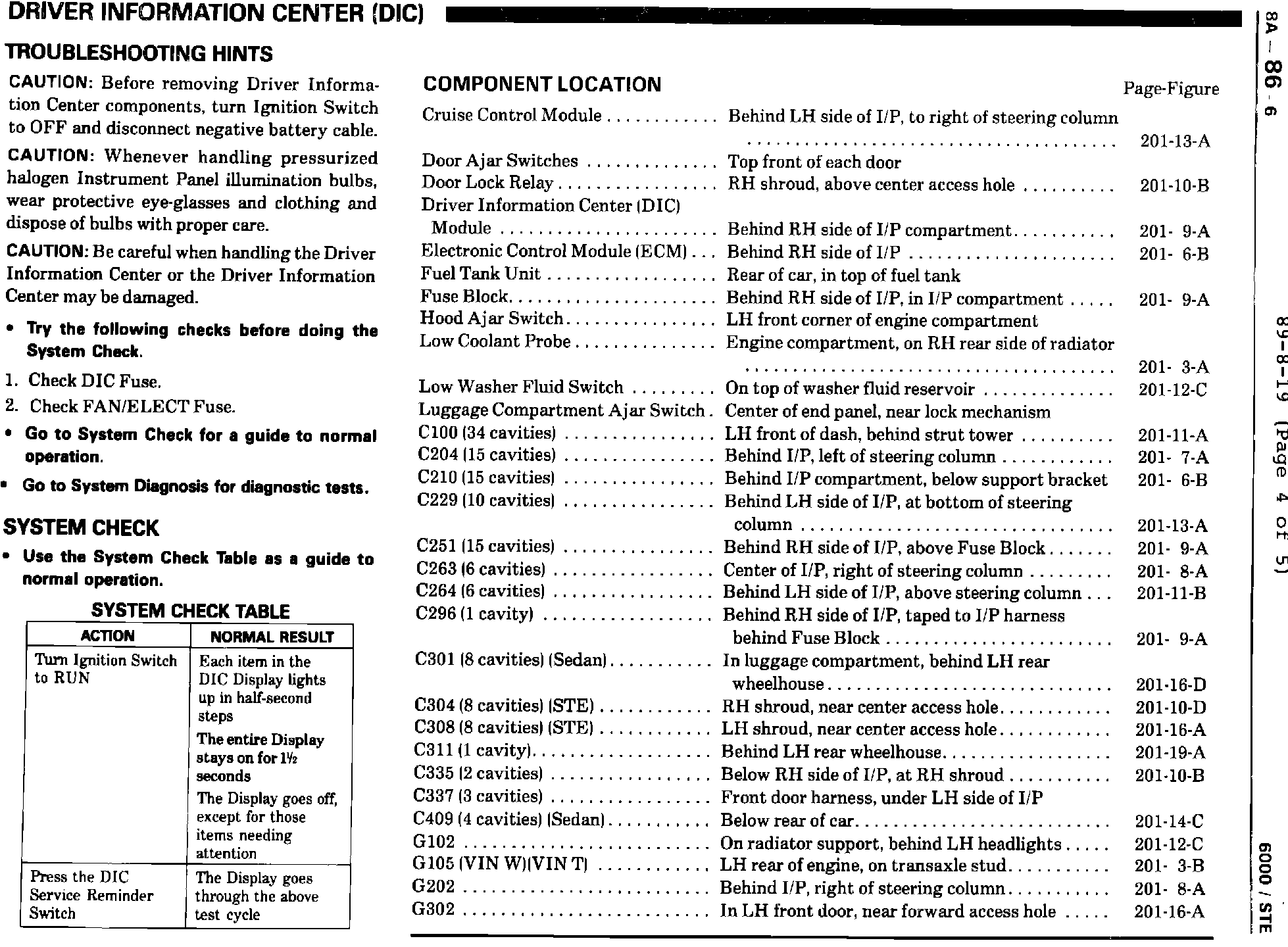 A number of the Component Location Figure references in the 1989 Service Manual for Section 8A are incorrect. Please remove the following pages and replace with the new pages for the following Service manuals.