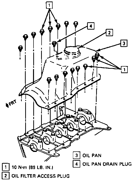 The following oil pan and gasket replacement procedure updates and replaces the current procedure found in the 1989-91 6000 Service manuals - Section 6A on the following pages, due to a new Labor Time Study.
