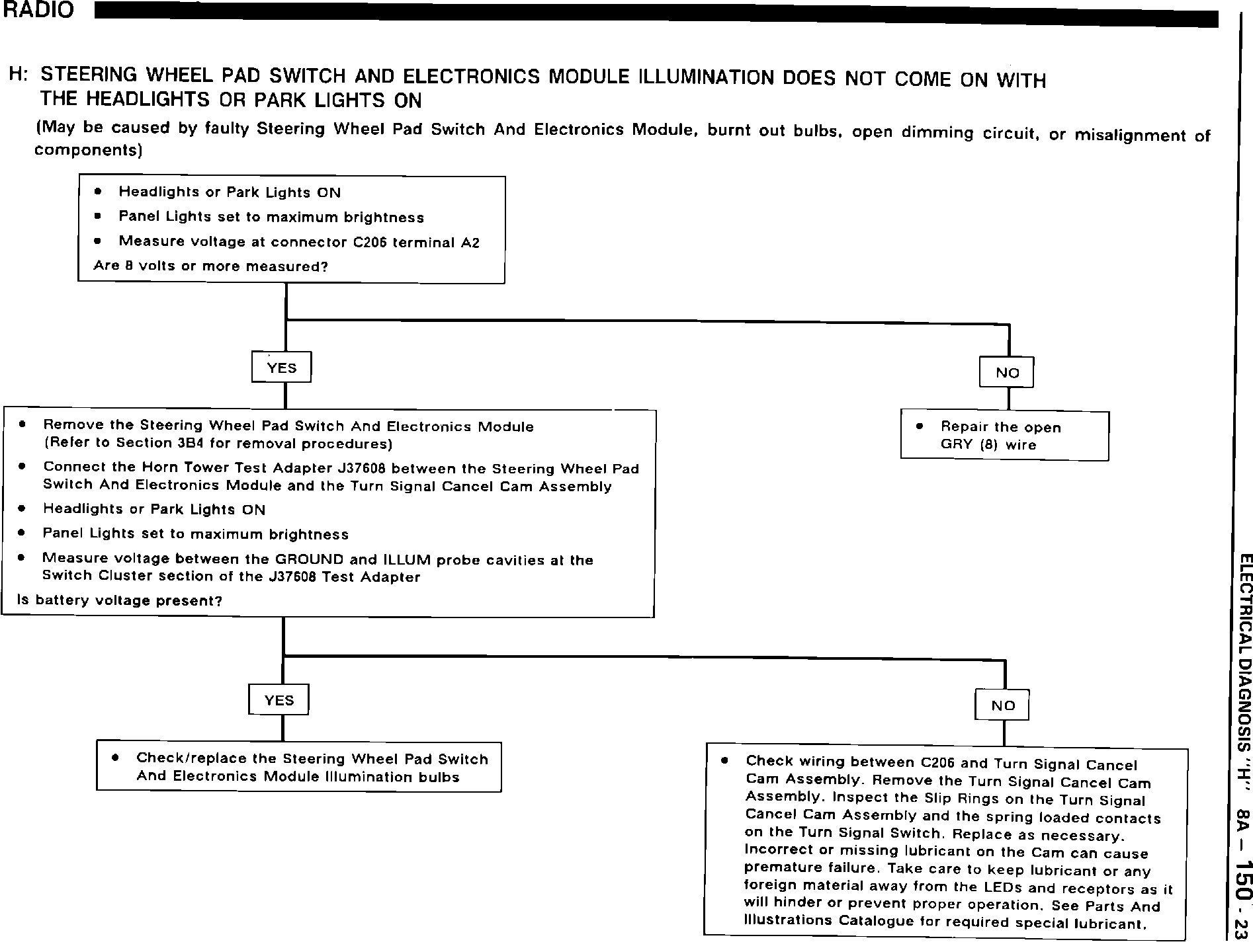 H: Steering Wheel Pad Switch Does Not Come On